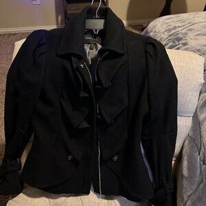 BCBG Max Azria Wool Cashmere Coat XS Black Belted Sleeve Winter Jacket