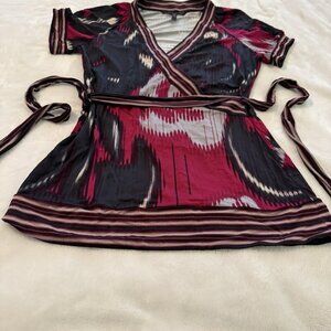 BCBG Max Azria Y2K V-Neck Babydoll Wrap Tie Workwear Blouse SM