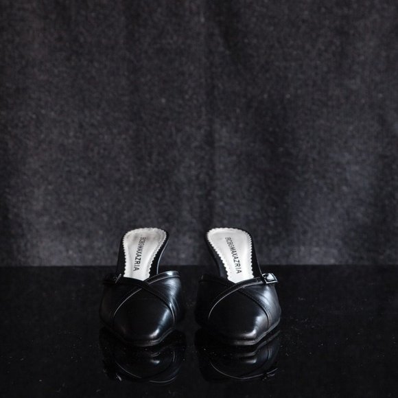 BCBG Max Azria Zuza Kid Mid Mule w/Buckle in Black Leather Size 6.5