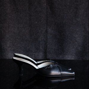 BCBG Zuza Kid Mid Mule w/Buckle. What a classic! Worn once for an interview at the New York Times’ T Magazine. True story. A classic shape in mint condition. Dress down with ripped boyfriend jeans and a tucked in white button down. Maybe a red lip. Every stylist’s uniform. Added $$ black rubber base to sole along with matching heel. Will last 4eva now. I’m gonna regret selling these as I age. 2 ½” kitten heel. Size 6.5.