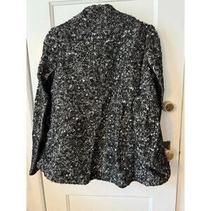 BCBG Max Azria black and white tweed swing jacket with black stretch sleeves