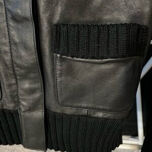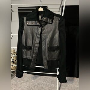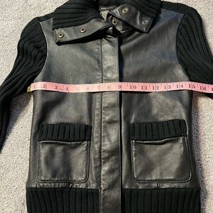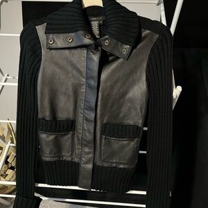 BCBG Max Azria black leather and sweater jacket EUC size S
