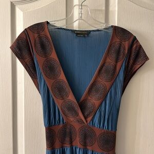 BCBG Max Azria brown blue shortsleeved deep v matte jersey dress size medium