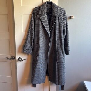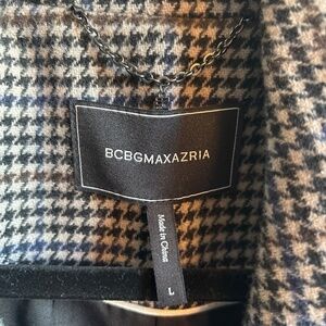 BCBG Max Azria large houndstooth plaid wrap, winter coat, brown black blue
