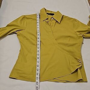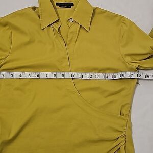 BCBG Max Azria mustard yellow, green cotton wrap shirt size small