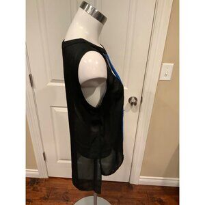 BCBG Max AzriaElcia Blue Black White Colorblock Semi-Sheer Sleeveless Top Size S