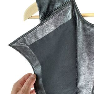 BCBG Max Azria Liu Black 100% Lamb Leather Zip Front Fitted Moto Vest Sz…