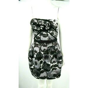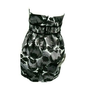BCBG MAX AZRIA Black & Gray Floral Strapless Dress Size 4 US Two pockets. Dress worn only once, pockets are still titched close. There is a small opening that you can start to unstitch if you want to use the pockets. Bubble style Skirt. Very good pre-owned condition. No rips, holes, or stains. Comes from smoke free environment. I only accept returns on this dress up tp three days of delivery notice do to the nature of this dress not being new with tags to keep from rental of dress.