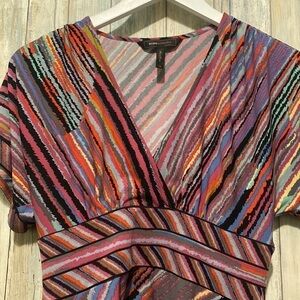BCBG Max Y2K Bright Multi Color V neck Blouse | Size XS