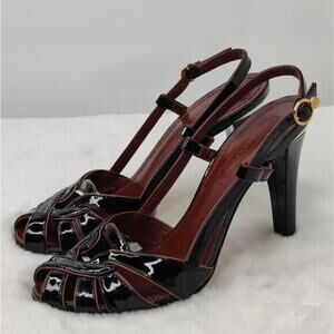 BCBG MaxAzaria Brown Peep Toe Sandals Sz 6.5