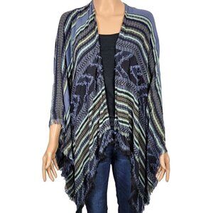 BCBG MaxAzaria Multi Media Blue Patterned Boho Fringed Light Weight Shawl/Poncho Size OS