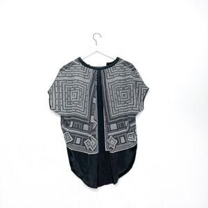 BCBG MaxAzira 'Ayanna' Geometric Print Boho Scarf Blouse Black/White size XS