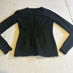 BCBG MaxAzria 100% wool olive drab green zip up sweater w ribbing design small