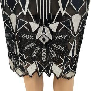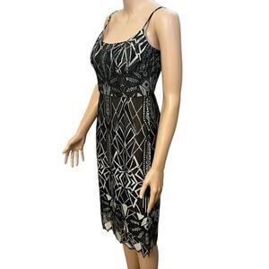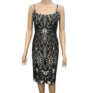 BCBG MaxAzria Alese Lace Mid Dress 2 Sheath Art Deco Geometric Party Holiday