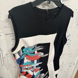 Sleeveless color block dress in excellent condition! This unique, asymmetrical peplum skirt is sure to be a statement piece at parties!