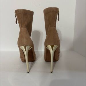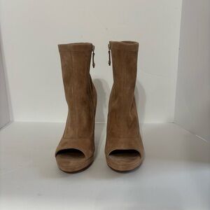 Step out in style like new elegant tan peep-toe stiletto boots. Perfect for any occasion, these boots offer a chic and sophisticated look.