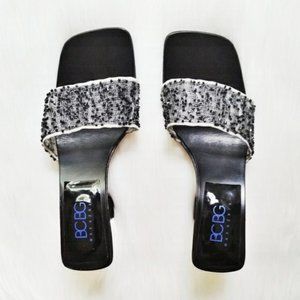 BCBG MaxAzria Beaded Block Heel Mule Slide Sandals