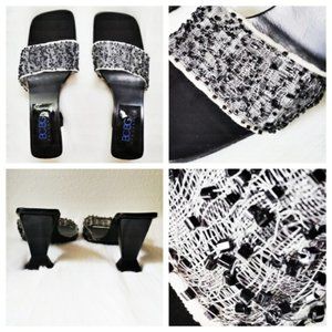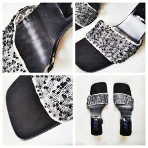 Unique & versatile BCBG MazAzria beaded block heel mule slides. A great fun & funky neutral staple piece for any wardrobe.