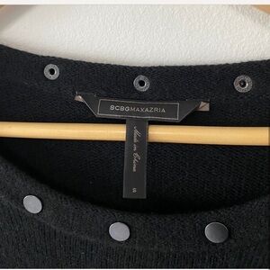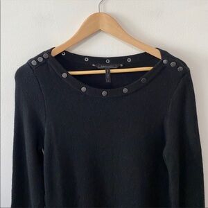 BCBG MaxAzria Black Alpaca Merino Wool Blend Flowy Boat Neck Tunic Sweater Dress