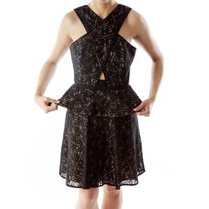 BCBG MaxAzria Black Nude Lace Cut-Out Cocktail Dress