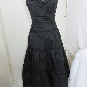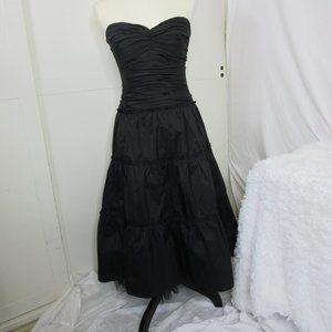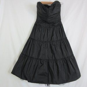 BCBG MaxAzria Black Silk Strapless Tiered Ruffle Formal Semi Midi Dress Size 4