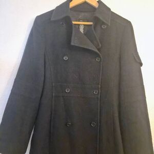 BCBG MaxAzria Black Wool Blend Sexy Trench Coat: Flattering Classic Essential