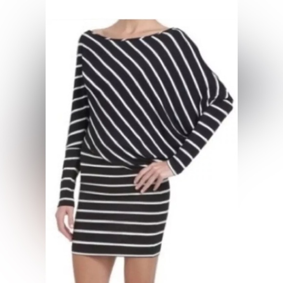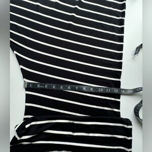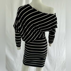 Pre owned great condition. asymmetrical, elegant and sporty woman viscose dress. Casual, party or everyday dress. Size XS black n white striped.