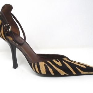 BCBG MAXAZARA CALF HAIR POINTY BROWN ZEBRA HEELS