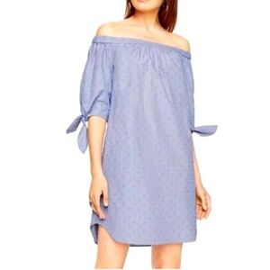 BCBG MaxAzria Cadence Off The Shoulder Cotton Shift Dress Blue NWT
