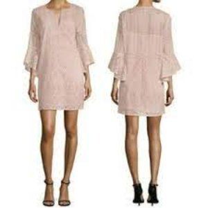 BCBG MaxAzria Catier Pink Lace Slip Shift Dress w Bell Sleeves Size M Like New
