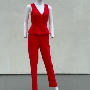 BCBG MaxAzria Cerys Peplum Jumpsuit lipstick red, V Neck Sleeveless Size 0 NWT