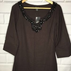 BCBG MaxAzria Cocoa/Black Jeweled Dress New with tags! Style#BC30413 Size Small