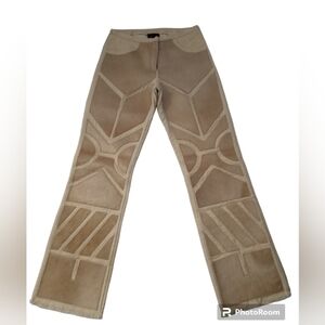 BCBG MaxAzria Collection Beige Hook Zip Closure Burlap Frayed Hem Pants …