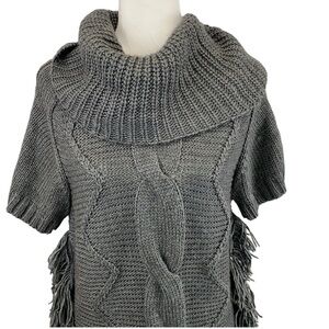 BCBG MaxAzria Cowl Neck Fringes Tunic Sweater