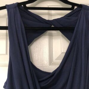 BCBG MaxAzria Draped Neck Blue Dress. Brand new, has just been sitting in my closet. It is a sleek fabric. Draped neck and curte twisty open detail on the back. I cut out the size tag.