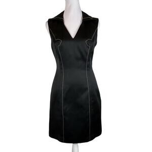 BCBG MaxAzria Dress Womens Size 4 Black Decorative Stitching Sleeveless Tailored
