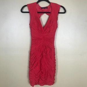 BCBG MaxAzria Dress Womens Small Red Edesa Shirred Cocktail Mini Bodycon