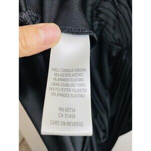 The black color of the dress is perfect for any occasion, and the pleated accents add a touch of elegance. The dress is a size M, and it fits a regular size type for women. The pullover closure makes it easy to wear, while the knee-length design adds a touch of sophistication. This dress is perfect for anyone who wants to feel stylish and comfortable at a party or cocktail event.