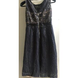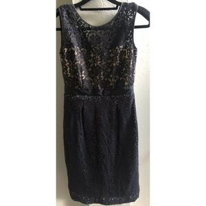 BCBG MaxAzria Floral Lace Dress Over Lay Peekcaboo Underlay Waist Band Siz 4.