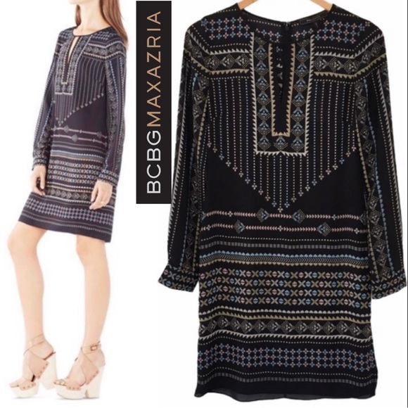 BCBG MaxAzria Freya Shift Column Tunic Style Boho Geometric Dress NWT | XS