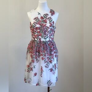 BCBG MaxAzria Gardenia Embroidered Tule Sleeveless Round Neck Dress Size 4