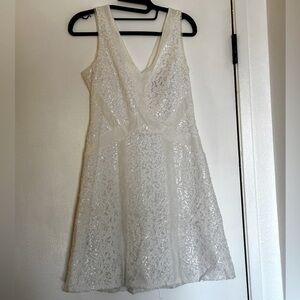 BCBG MaxAzria: Gracie Off White Sequin Lace Sleeveless A-Line Dress 6 wedding