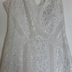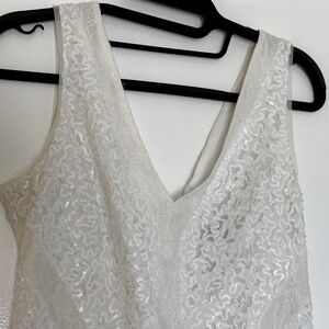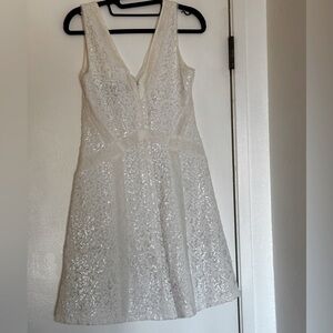 BCBG MaxAzria, BCBG Dress, Sequin Dress, Lace Dress, White Dress, Bridal Shower Dress, Wedding, Bride, Cocktail Dress, Elegant Dress, Garden Party, Formal Dress, Special Occasion, Sleeveless Dress, A-Line Dress, Size 6, Off White Dress, Feminine Style, Summer Dress, NWT, Evening Dress