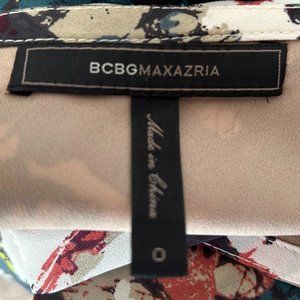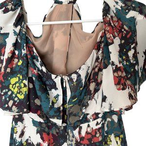 BCBG MaxAzria Green/Multicolor Print Kelly Ruffled Off-The-Shoulder Dress Size 0
