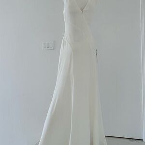BCBG MaxAzria High Low Maxi Dress Sleeveless V Neck Size 0 Off White