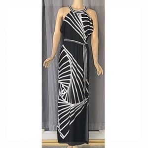 BCBG MaxAzria Black White Stripe “Karsen” Maxi Long Dress