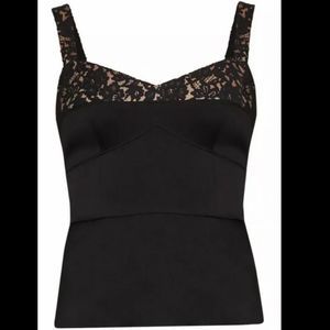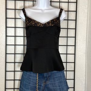 BCBG Max Azria Lace Corset Tank Top Shirt Cami Black Tan Back Zip Fitted