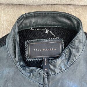 BCBG MaxAzria Leather Front + Sweater Back Jacket