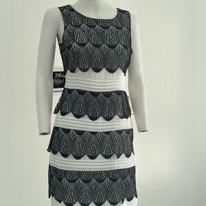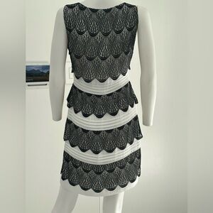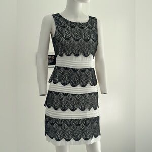 BCBG MaxAzria Lorenna Scalloped lace dress sleeveless black and white size 6