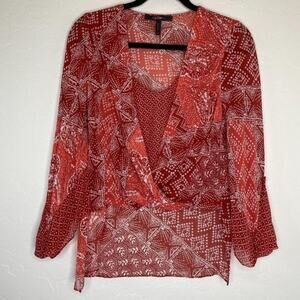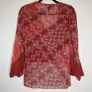BCBG MaxAzria Nickelette Batik Printed 100% Silk Blouse XXS